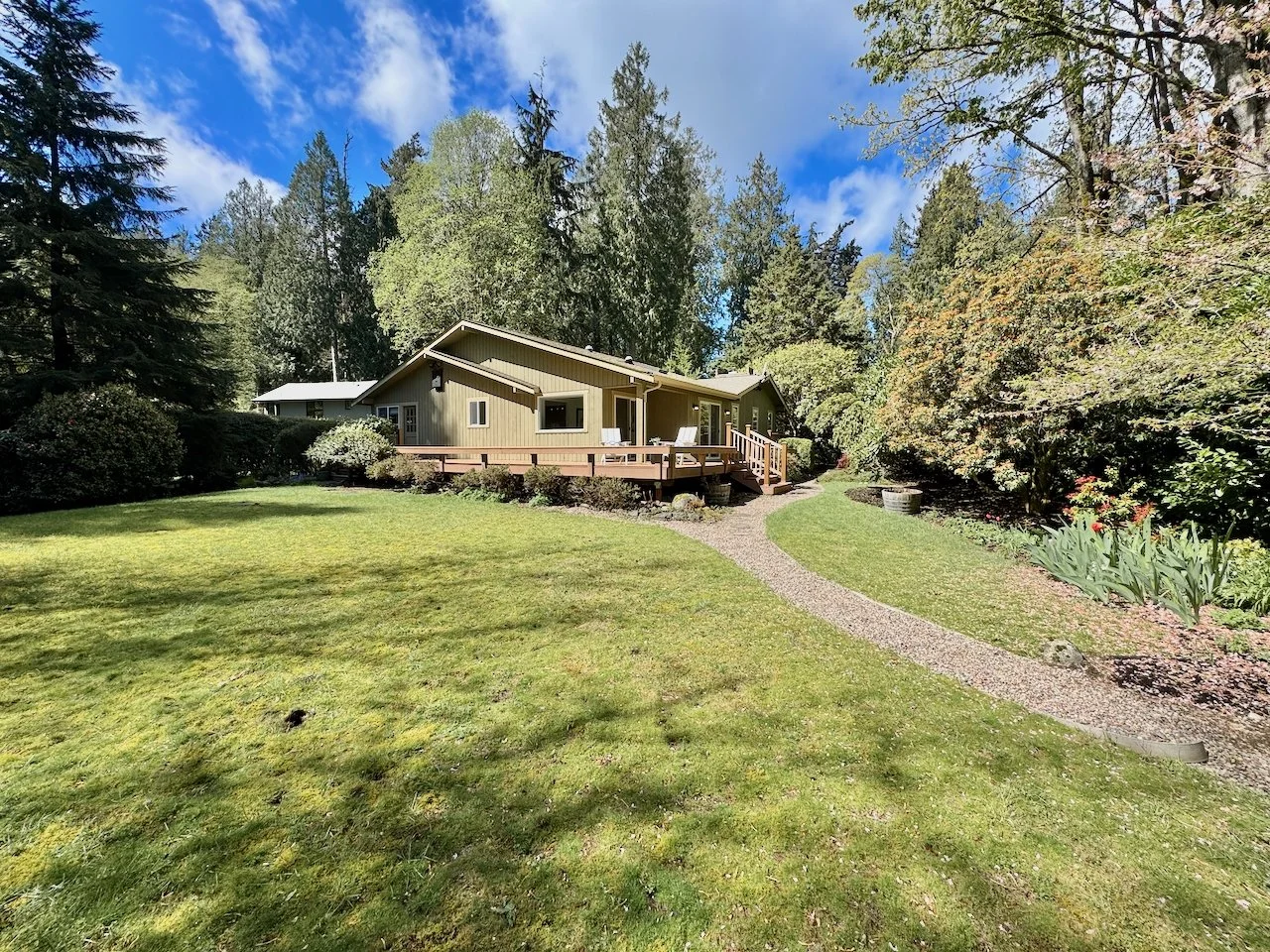 8421 NE Grizdale Lane, Bainbridge Island | 2,930sf | 3 bedrooms | .89 acres | Main Floor Primary | Detached garage and upper studio | Built by Salish Sea Builders in 1996